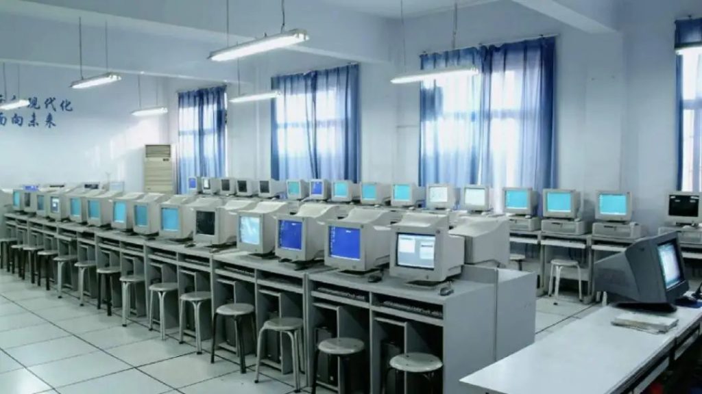 In primary school, we had computer lessons, then called “microcomputer class.” An entire class of children would line up at the door of the computer lab, put on blue plastic shoe covers, and only then were we allowed into the computers’ realm to learn powering on and off, typing, file management, and Office software. After handing in the class assignment, we were allowed to play for a short while. But the lab machines were not connected to the Internet during lessons, and we usually only had typing tutors or drawing programs to play with.
