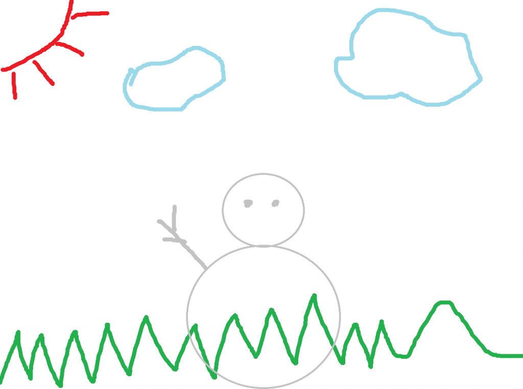 All I knew how to do was open the Paint program and draw crooked lines with the mouse. A quarter-arc in the top corner of the canvas was the sun, the jagged line at the bottom was the lawn. Two circles drawn on top of each other made a snowman. After finishing the snowman, I could use the paint bucket to fill the background with blue. But only after carefully checking that every other line was closed, otherwise the snowman would end up standing on a blue lawn with a blue sun overhead.