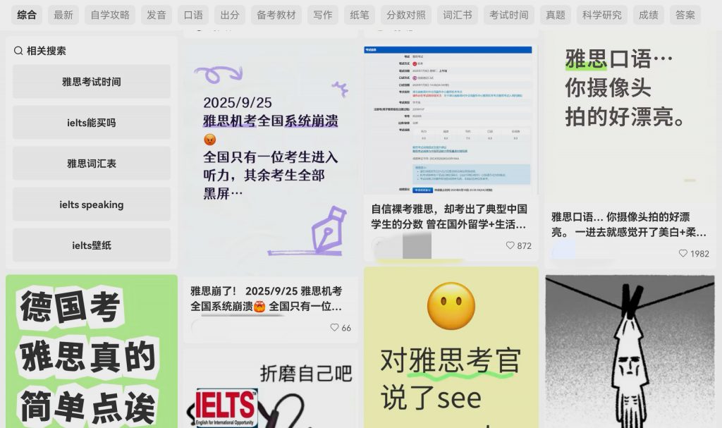 Most users here post content in the form of images and texts, and the age demographic aligns closely with mine. The IELTS topic also enjoys high popularity on the platform: many IELTS-specific bloggers offer free study materials (like must-memorize vocabulary and essay-writing tips), while numerous test-takers who scored well share their writing templates and spoken test questions.It felt like a godsend to me back then-perfectly matching my need to quickly access exam materials and test-taking experiences. Thus began my routine of solving practice questions on my own while frequently turning to REDnote for searches.