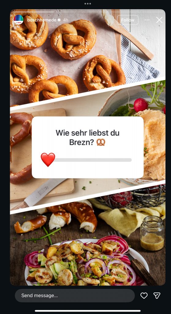 Last but not least, I decide to return to Instagram and look up Bosch Germany’s account, thinking they’d maybe posted a statement or something, but all I can find is a pretzel related survey (it’s the opening weekend of Oktoberfest after all I guess).