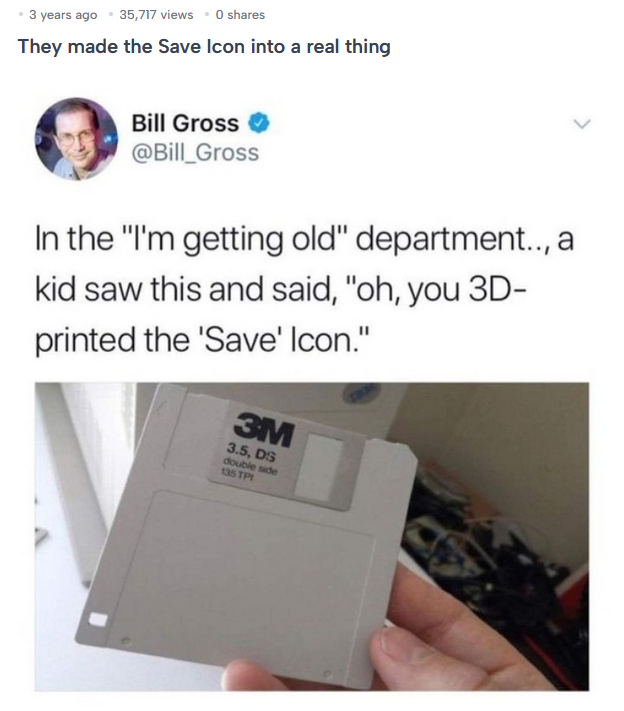 And that’s what makes the tweet so fun to think about for me. When the kid says “you 3D-printed a save icon,” they’re not wrong. They’re just living fully inside that now hyperreality. In their world, the save icon is the original. They’re seeing the simulation as the real thing, because for them, it is.
