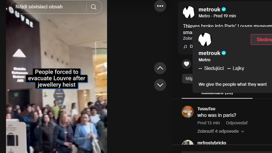 Given this example, let’s imagine one is scrolling on TikTok and suddenly comes across a video seen in the screenshot image above. This video provides little to no context of what is actually the situation. These short-term videos are trying to achieve one thing and one thing only: views. You, as the user, have to dig a little deeper to get the actual message of this video. TikTok provides hashtags with every video to reach a wider audience, as well as associate this video with the whole group of other content on the app. Thanks to the hashtag, one can click to access a wide variety of content. Let’s say the topic of the Louvre being robbed is the topic of research. Clicking on the hashtag #louvre allows us to see all of these videos as seen in the screenshot.